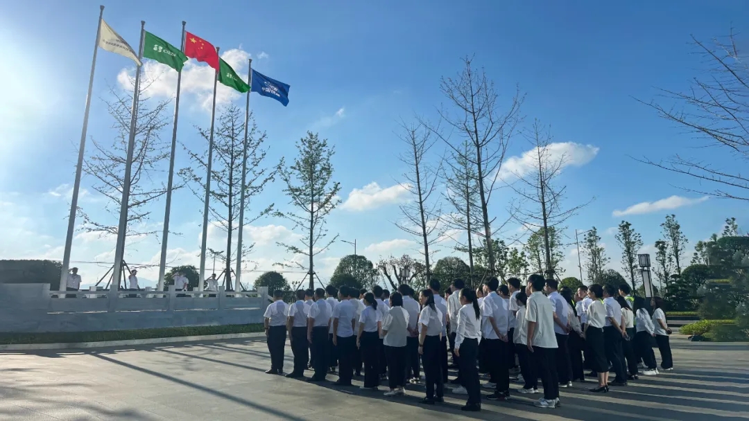 瀏覽次數:854紅旗飄揚,國歌嘹亮。鑫政科技集團管理團隊、員工代表整齊列隊在新能源產業園企業文化廣場,迎著清晨的朝陽參與綜合樓啟用典禮升旗儀式。