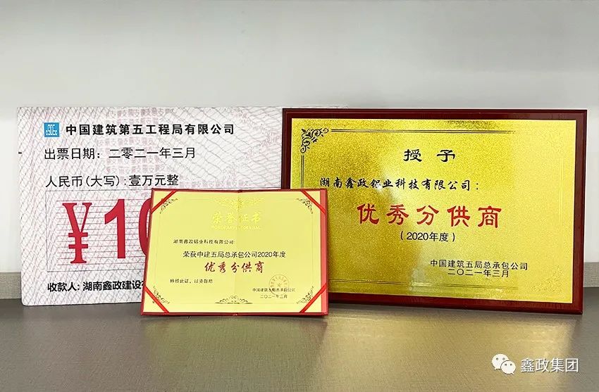 瀏覽次數:877喜訊連連捷報傳。近日,在中建五局總承包公司2021年分包(供)商答謝會暨優秀分包(供)商表彰會上,集團下屬子公司湖南鑫政鋁業科技有限公司與湖南鑫政建設有限公司分別喜獲2020年度“優秀分供商”與“良好分包商”獎項。