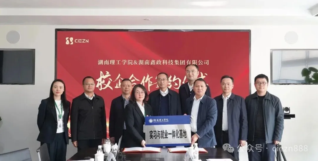在與會嘉賓的共同見證下,湖南理工學院與鑫政科技正式簽署戰略合作協議,并授牌設立“實習與就業一體化基地”。該基地將聚焦綠色建材與新能源領域,共同開展技術研發、成果轉化與人才共育,為學生提供從實習到就業的全周期成長通道。